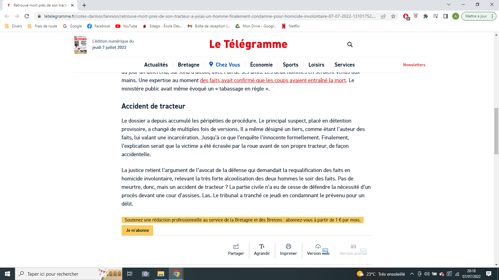 Mort d’un agriculteur à Yvias en 2017 : un homme condamné à cinq ans de prison