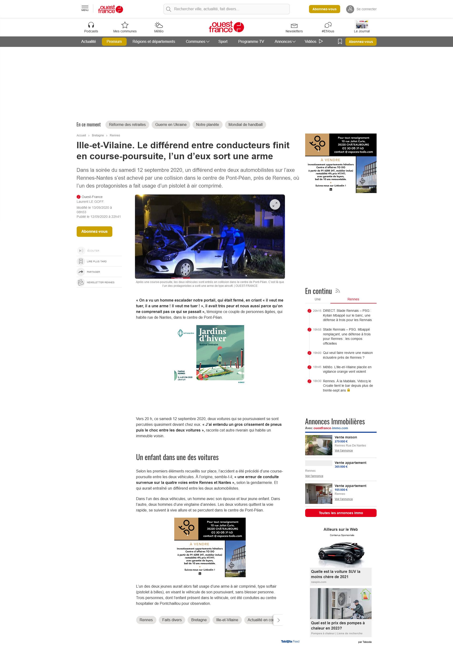 Poursuivis par la douane pendant 45 km les dealers percutent la voiture d'une famille à Fougères
